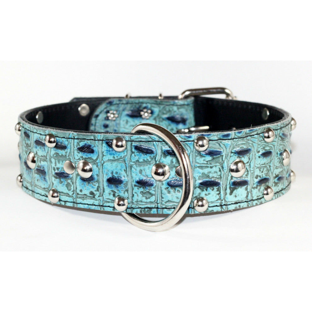 Handcrafted Studded leather dog collar is made from heavy duty full grain 10 oz Napa latigo leather. Edges are rounded and smoothed out for a nice luxury feel. The collar has roller buckles, welded leash ring and strap keepers that are riveted in with a heavy duty press. Collar has the leash ring on the back so it shows off the entire collar when you walk your dog.